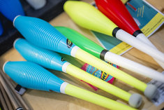 Caption: SportunterrichtSymbolbild: Sportunterricht. Keulen auf einem Haufen. Aufgenommen im Rahmen der didacta Bildungsmesse in Koeln, 10.03.2026.