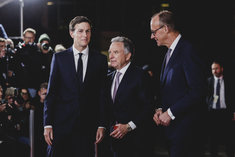 Caption: Bundeskanzler Merz trifft europaeische Staats- und Regierungschefs im Bundeskanzleramt(L-R) Jared Kushner, Berater und Schwiegersohn des US-Praesidenten, Steve Witkoff, Sondergesandter des US-Praesidenten, und Friedrich Merz (CDU), Bundeskanzler, aufgenommen im Rahmen eines ersten Aufeinandertreffens im Bundeskanzleramt in Berlin, 15.12.2025. Der Bundeskanzler kommt am Abend nach dem bilateralen Treffen mit dem ukrainischen Praesidenten zusammen mit weiteren europaeischen Staats- und Regierungschefinnen und -chefs sowie den Spitzen von EU und NATO.