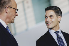 Stichworte: Politik Politics Politiker Politician Frontal Von Vorne front view Portraet Portrait head headshot Querformat QF Horizontal Neutraler Hintergrund neutral background Textfreiraum textfreier Raum Text freier Raum Copyspace Copy Space Text Blank Halbe Figur Halbfigur half-length waist up Anschnitt gate