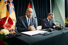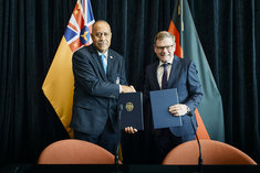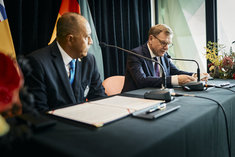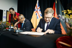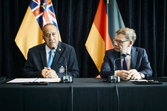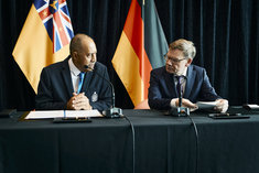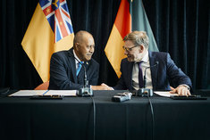 Caption: Auswaertiges Amt AucklandJohann Wadephul (CDU), Bundesaussenminister, aufgenommen im Rahmen der Unterzeichnung der Erklaerung zur Aufnahme diplomatischer Beziehungen zwischen der Bundesrepublik Deutschland und Niue Gemeinsam mit dem Premierminister von Niue, Herrn Dalton Tagelagi, in Auckland, 03.02.2026. Fotografiert im Auftrag des Auswaertigen Amtes.