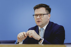 Caption: Vorstellung des Klimaschutzprogramms 2026Carsten Schneider (SPD), Bundesminister fuer Umwelt, Klimaschutz, Naturschutz und nukleare Sicherheit, aufgenommen im Rahmen der Bundespressekonferenz zur Vorstellung des Klimaschutzprogramms 2026 in Berlin, 25.03.2026.