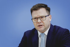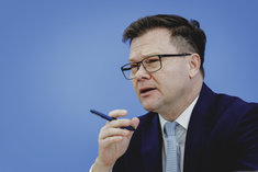 Stichworte: Politik Politics Politiker Politician Neutraler Hintergrund neutral background Textfreiraum textfreier Raum Text freier Raum Copyspace Copy Space Text Blank sieht nach rechts looks to the right Portraet Portrait head headshot Querformat QF Horizontal Gestik gestikulieren gestikuliert Gesture gesturing gestures