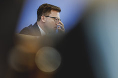 Stichworte: Politik Politics Politiker Politician Neutraler Hintergrund neutral background Textfreiraum textfreier Raum Text freier Raum Copyspace Copy Space Text Blank sieht nach links looks to the left Portraet Portrait head headshot Querformat QF Horizontal Gestik gestikulieren gestikuliert Gesture gesturing gestures