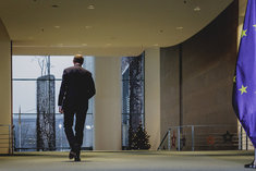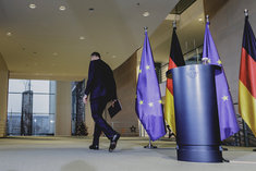 (L-R) Hendrik Wuest, Ministerpraesident von Nordrhein-Westfalen, Markus Soeder, Ministerpraesident von Bayern, Friedrich Merz (CDU), Bundeskanzler, Thomas Weikert, Praesident des Deutschen Olympischen Sportbundes (DOSB), Kai Wegner, Regierender Buergermeister von Berlin, Peter Tschentscher, Erster Buergermeister der Freien und Hansestadt Hamburg, und Christiane Schenderlein, Staatsministerin fuer Sport und Ehrenamt, aufgenommen im Rahmen der Unterzeichnung der Vereinbarung zur Olympiabewerbung in Berlin, 04.12.2025.