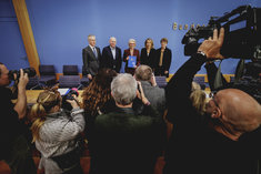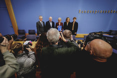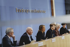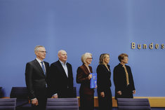 Caption: Vorstellung des Jahresgutachtens 2025/26 des Sachverstaendigenrates(L-R) Martin Werding, Mitglied des Sachverstaendigenrates Wirtschaft, Achim Truger, Mitglied des Sachverstaendigenrates Wirtschaft, Ulrike Malmendier, Mitglied des Sachverstaendigenrates Wirtschaft, Veronika Grimm, Mitglied des Sachverstaendigenrates Wirtschaft, und Monika Schnitzer, Vorsitzende des Sachverstaendigenrates zur Begutachtung der gesamtwirtschaftlichen Entwicklung, aufgenommen im Rahmen der Vorstellung des Jahresgutachtens 2025/26 des Sachverstaendigenrat zur Begutachtung der gesamtwirtschaftlichen Entwicklung in Berlin, 12.11.2025.