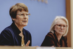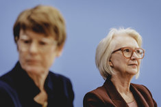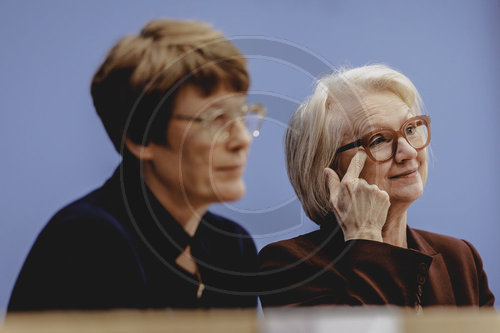 Caption: (R-L) Monika Schnitzer, Vorsitzende des Sachverstaendigenrates zur Begutachtung der gesamtwirtschaftlichen Entwicklung, und Veronika Grimm, Mitglied des Sachverstaendigenrates Wirtschaft, aufgenommen im Rahmen der Vorstellung des Jahresgutachtens 2025/26 des Sachverstaendigenrat zur Begutachtung der gesamtwirtschaftlichen Entwicklung in Berlin, 12.11.2025.