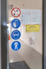 Caption: Tubulis GmbHWarnschilder an einer Labortuere der Tubulis GmbH, einem Biotechnologie-Startup aus dem LifeScience-Bereich, bei der Laborarbeit. 06.02.2026