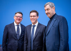 Caption: Drei Loewen AllianzVlnr.: Boris Rhein, Ministerpraesident von Hessen, Manuel Hagel, Landesvorsitzender der CDU und Spitzenkandidat in Baden-Wuerttemberg, Markus Soeder, Ministerpraesident von Bayern, aufgenommen in der Bundespressekonferenz, Berlin, 30.01.2026.