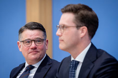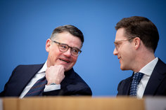 Caption: Rhein, HagelVlnr.: Boris Rhein, Ministerpraesident von Hessen, Manuel Hagel, Landesvorsitzender der CDU und Spitzenkandidat in Baden-Wuerttemberg, aufgenommen in der Bundespressekonferenz, Berlin, 30.01.2026.