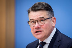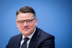 Stichworte: Politik Politics Politiker Politician sieht nach links looks to the left Portraet Portrait head headshot Querformat QF Horizontal Neutraler Hintergrund neutral background Textfreiraum textfreier Raum Text freier Raum Copyspace Copy Space Text Blank
