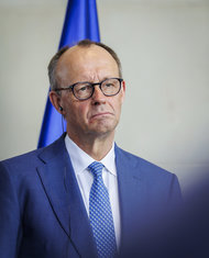 Caption: Friedrich MerzFriedrich Merz (CDU), Bundeskanzler, aufgenommen waehrend einer Pressekonferenz mit seinem tschechischen Amtskollegen im Bundeskanzleramt in Berlin, 10.03.2026.