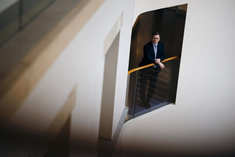 Stichworte: Politik Politics portaet Portraet Portrait head headshot stehend stehende stehender stehendes stehen steht standing stands halbe Figur Halbfigur half-length waist up Anschnitt gate sieht nach links looks to the left textfreier Raum Textfreiraum Text freier Raum Copyspace Copy Space Text Blank neutraler Hintergrund neutral background