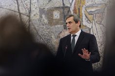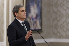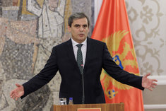Caption: Ervin IbrahimovicErvin Ibrahimovic, Aussenminister von Montenegro, aufgenommen im Rahmen einer Pressekonferenz in Podgorica, 17.11.2025. Fotografiert im Auftrag des Auswaertigen Amtes.