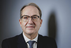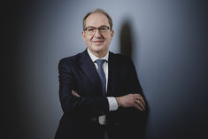 Stichworte: Politik Politics Politiker Politician Frontal Von Vorne front view Portraet Portrait head headshot Querformat QF Horizontal Blick in die Kamera Looking At Camera inszeniert Halbe Figur Halbfigur half-length waist up Anschnitt gate Neutraler Hintergrund neutral background Textfreiraum textfreier Raum Text freier Raum Copyspace Copy Space Text Blank