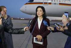 Caption: BM Reiche reist nach IsraelKatherina Reiche (CDU), Bundesministerin fuer Wirtschaft und Energie, reist nach Israel. Hier bei einem Statement kurz vor dem Abflug nach Tel Aviv. 15.12.2025 Fotografiert im Auftrag des BMWE