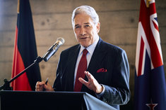 Caption: Auswaertiges Amt KerikeriMinister fuer Auswaertige Angelegenheiten von Neuseeland, Herrn Winston Peters, im Rahmen eine Pressekonferenz mit Johann Wadephul (CDU), Bundesaussenminister, (nicht im Bild) in Kerikeri, 03.02.2026. Fotografiert im Auftrag des Auswaertigen Amtes.