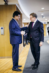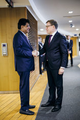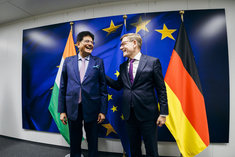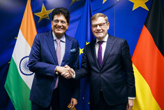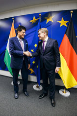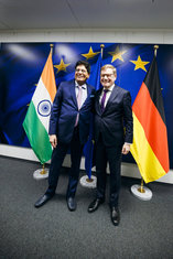 Johann Wadephul (CDU), Bundesaussenminister, trifft Piyush Goyal, Handels- und Industrieminister der Republik Indien zu einem Gespraech in Bruessel, 27.10.2025. Fotografiert im Auftrag des Auswaertigen Amtes (AA)