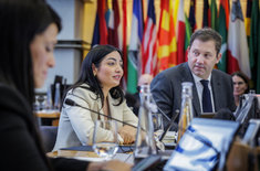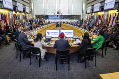 Caption: Reise Alabali Radovan nach WashingtonReem Alabali Radovan (SPD), Bundesministerin fuer wirtschaftliche Zusammenarbeit und Entwicklung, aufgenommen im Rahmen ihrer Teilnahme an der Jahrestagung der Weltbank und des IWF in Washington. Hier Ministerielles Treffen der Horn of Africa Initiative. 'Fotografiert im Auftrag des Bundesentwicklungsministeriums'