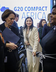 Caption: Reise Alabali Radovan nach WashingtonReem Alabali Radovan (SPD), Bundesministerin fuer wirtschaftliche Zusammenarbeit und Entwicklung, aufgenommen im Rahmen ihrer Teilnahme an der Jahrestagung der Weltbank und des IWF in Washington. Hie bei der Veranstaltung ‚G20 Compact with Africa‘ ‚Fotografiert im Auftrag des Bundesentwicklungsministeriums'