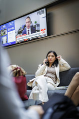 Caption: Reise Alabali Radovan nach WashingtonReem Alabali Radovan (SPD), Bundesministerin fuer wirtschaftliche Zusammenarbeit und Entwicklung, aufgenommen im Rahmen ihrer Teilnahme an der Jahrestagung der Weltbank und des IWF in Washington. Hier bei einer Kaffeepause in einem Kaffee. ‚ÄöFotografiert im Auftrag des Bundesentwicklungsministeriums'