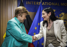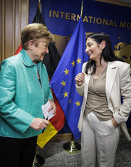 Caption: Reise Alabali Radovan nach WashingtonReem Alabali Radovan (SPD), Bundesministerin fuer wirtschaftliche Zusammenarbeit und Entwicklung, aufgenommen im Rahmen ihrer Teilnahme an der Jahrestagung der Weltbank und des IWF in Washington. Hier mit Anna Bjerde, Managing Director of Operations World Bank. ‚ÄöFotografiert im Auftrag des Bundesentwicklungsministeriums'