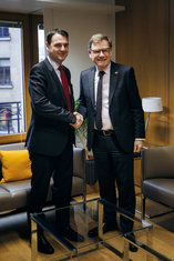 Caption: Wadephul beim Rat fuer Auswaertige Angelegenheiten in BruesseJohann Wadephul (CDU), Bundesaussenminister, trifft im Rahmen des Rates fuer Auswaertige Angelegenheiten Petr Macinka, Stellvertretender Ministerpraesident der Tschechischen Republik zu einem Gesprach in Bruesse. 29.01.2026. Fotografiert im Auftrag des Auswaertigen Amtes (AA)