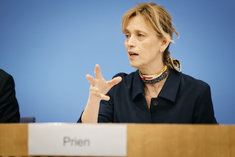 Caption: BMBFSFJ in BundespressekonferenzKarin Prien (CDU), Bundesministerin fuer Bildung, Familie, Senioren, Frauen und Jugend, im Rahmen der Bundespressekonferenz zur Vorstellung der Studie "Senioren in der digitalen Welt" in Berlin, 15.01.2026. Bundesministerium für Bildung, Familie, Senioren, Frauen und Jugend.