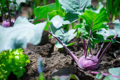 Stichworte: Wurzelgemuese violetter Kohlrabi lila Kohlrabi turnip cabbage german turnip stem cabbage Essen und Trinken Ernaehrung Nahrung Nutrition food eat drink Lebensmittel Nahrungsmittel foodstuff Gemuese Vegetable Gesund gesunde gesunder gesundes Healthy ausgewogen vegan vegetarisch vegetarian Beet Erde Feld Ernte Gewaechshaus