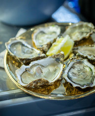 Stichworte: Auster Austern oyster oysters Zitrone lemon gold Teller plate Meerestier seafood Luxus luxuriös luxurious dekadent decadent Essen und Trinken Ernaehrung Nahrung Nutrition food eat drink Lebensmittel Nahrungsmittel foodstuff