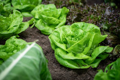 Stichworte: Salat salad Schnittsalat Pfluecksalat Kopfsalat batavia Essen und Trinken Ernaehrung Nahrung Nutrition food eat drink Lebensmittel Nahrungsmittel foodstuff Gemuese Vegetable Gesund gesunde gesunder gesundes Healthy ausgewogen vegan vegetarisch vegetarian Beet Erde Feld Ernte Gewaechshaus