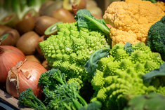 Caption: Obst und GemueseRomanesco, Zwiebeln, Blumenkohl, Brokkoli und Kiwis aufgenommen im Rahmen der Gruenen Woche 2026, Berlin, 16.01.2026.