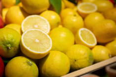 Stichworte: Zitrone Zitronen citrus lemon Frucht Fruechte Obst Obstkiste Essen und Trinken Ernaehrung Nahrung Nutrition food eat drink Lebensmittel Nahrungsmittel foodstuff Fruit Supermarkt supermarket Auslage display vegan vegetarisch vegetarian