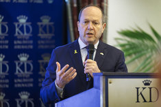 Caption: BM Reiche reist nach IsraelKatherina Reiche (CDU), Bundesministerin fuer Wirtschaft und Energie, reist nach Israel. Hier bei einer Rede auf dem Jahrestreffen der Leiter der Wirtschaftsabteilungen israelischer Botschaften . Jerusalem, 16.12.2025 Fotografiert im Auftrag des BMWE