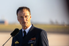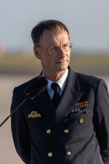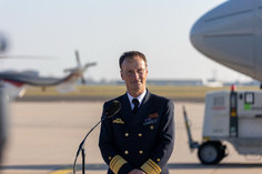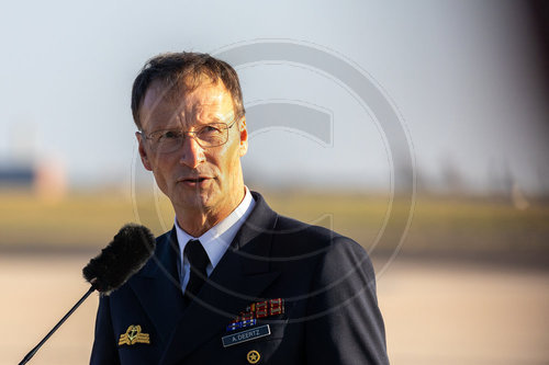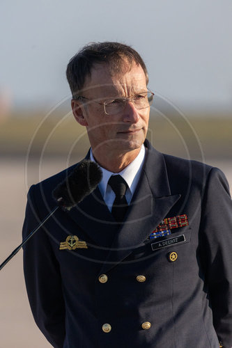 Caption: Vizeadmiral Axel Deertz bei der Landung der ersten P-8A Poseidon der Marine in Berlin, 07.11.2025.
