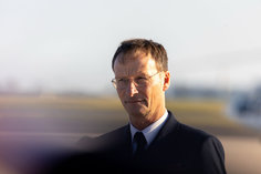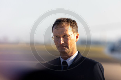 Caption: Boris Pistorius (SPD), Bundesminister der Verteidigung bei der Landung der ersten P-8A Poseidon der Marine in Berlin, 07.11.2025.