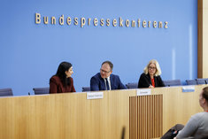 Caption: Reem Alabali-Radovan - Carsten SchneiderReem Alabali-Radovan (SPD), Bundesministerin fuer wirtschaftliche Zusammenarbeit und Entwicklung, und Carsten Schneider (SPD), Bundesminister fuer Umwelt, Klimaschutz, Naturschutz und nukleare Sicherheit, bei einer Pressekonferenz zum Thema: Deutschlands und Europas Beitrag zur Weltklimakonferenz in Brasilien - Berlin, 05.11.2025. Fotografiert im Auftrag des Bundesentwicklungsministeriums