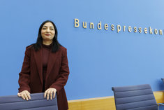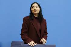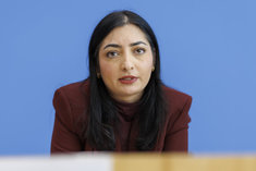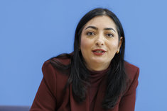 Caption: Reem Alabali-Radovan (SPD), Bundesministerin fuer wirtschaftliche Zusammenarbeit und Entwicklung in der Bundespressekonferenz, Berlin, 05.11.2025.