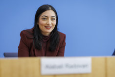 Caption: Reem Alabali RadovanReem Alabali-Radovan (SPD), Bundesministerin fuer wirtschaftliche Zusammenarbeit und Entwicklung in der Bundespressekonferenz, Berlin, 05.11.2025.