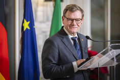 Stichworte: Politik Politics Politiker Politician sieht nach links looks to the left Portraet Portrait head headshot Querformat QF Horizontal laecheln laechelt laechelnd smile smiles smiling freundlich freundliche friendly Neutraler Hintergrund neutral background Textfreiraum textfreier Raum Text freier Raum Copyspace Copy Space Text Blank