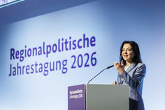 Caption: BMin Reiche in HalleKatherina Reiche (CDU), Bundesministerin fuer Wirtschaft und Energie, haelt eine Rede auf der regionalpolitischen Jahrestagung des BMWE in Halle, 02.03.2026. / Fotografiert im Auftrag des Bundesministeriums fuer Wirtschaft und Energie.