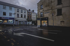 Caption: BallinaStrassenansicht am Abend in Ballina, 10.03.2026.