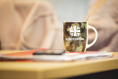 Caption: Kaffeetasse der BundeswehrKaffeetasse mit dem Logo und Schriftzug der Bundeswehr. Koeln, 10.03.2026.