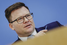 Caption: Vorstellung des Klimaschutzprogramms 2026Carsten Schneider (SPD), Bundesminister fuer Umwelt, Klimaschutz, Naturschutz und nukleare Sicherheit, aufgenommen vor der Bundespressekonferenz zur Vorstellung des Klimaschutzprogramms 2026 in Berlin, 25.03.2026.