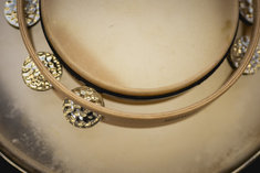 Caption: MusikinstrumenteSymbolbild: Zwei Tamburine liegen aufeinander. Aufgenommen im Rahmen der didacta Bildungsmesse in Koeln, 10.03.2026.