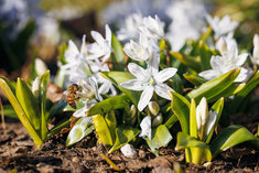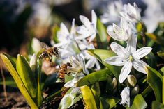 Caption: Bienen sammeln am Kaukasischen Blaustern NektarBienen sammeln am Kaukasischen Blaustern (Scilla mischtschenkoana) Pollen und Nektar in Berlin, 07.03.2026.