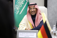 Caption: BM Reiche reist nach Saudi ArabienKatherina Reiche (CDU), Bundesministerin fuer Wirtschaft und Energie, reist mit einer Wirtschaftsdelegation nach Saudi Arabien. Hier Sheikh Khaled Juffali beim Besuch einer Baustelle von Juffali Commercial Vehicles (JCV), exklusiver Vertriebspartner fuer Mercedes-Benz Lkw und Busse in Saudi-Arabien, und Saudi Liebherr Company ltd. Djidda, 01.02.2026 Fotografiert im Auftrag des BMWE