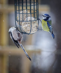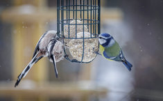 Caption: VogelBlaumeise (vorne) und Stieglitz