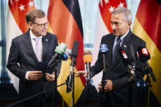 Caption: Auswaertiges Amt SingapurGemeinsame Pressekonferenz von Johann Wadephul (CDU), Bundesaussenminister, Minister fuer Auswaertige Angelegenheiten der Republik Singapur, Herrn Dr. Vivian Balakrishnan in Singapur, 02.02.2026. Fotografiert im Auftrag des Auswaertigen Amtes.