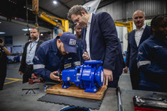 Caption: Bundesfinanzminister Klingbeil in SuedafrikaLars Klingbeil, Bundesminister der Finanzen, aufgenommen im Rahmen einer Besichtigung des KSB Pump and Valves Werk in Johannesburg, 21.11.2025. 'Fotografiert im Auftrag des Bundesfinanzministeriums'