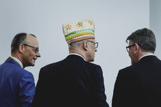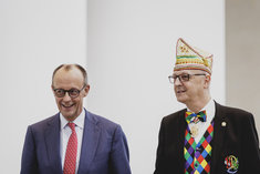 Stichworte: fasching bundeskanzleramt merz bundeskanzler karneval karnevalisten friendly lachend lachen lacht laughing Neutraler Hintergrund neutral background Textfreiraum textfreier Raum Text freier Raum Copyspace Copy Space Text Blank